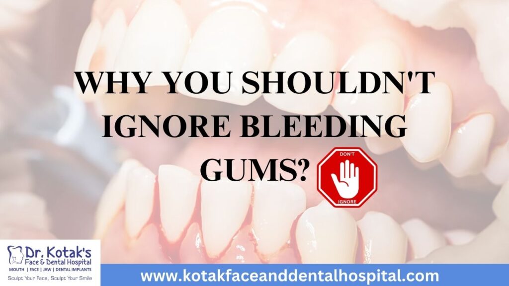 Image showing red, inflamed gums with a warning about the importance of not ignoring bleeding gums and seeking care at Dr. Kotak’s Face and Dental Hospital.